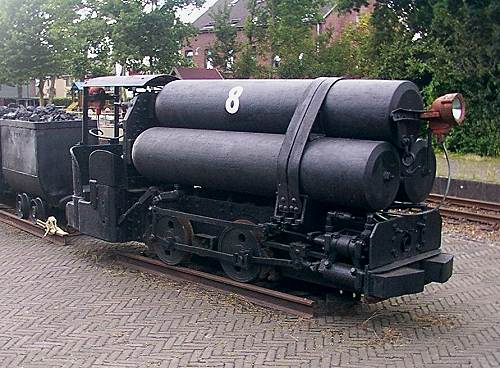 Im Bahnhof Simpelveld steht auf dem Bahnsteig eine Gruben-Druckluftlok älterer Bauart. Sie verfügt über drei Flaschen, über zwei Zylinder werden über recht filigran aussehnde Kuppelstangen die beiden Achsen angetrieben. Lt. Museumsführer (für nur einen Euro!) hatte die Lok eine Zugkraft von 1785 kg, was für maximal 60 Kohlenloren á 5 Tonnen ausreichte. Lt. Gerard de Graaf handelt es sich dabei um eine Lok von Hohenzollern, demnach aus der Serie 4617-26/1928.