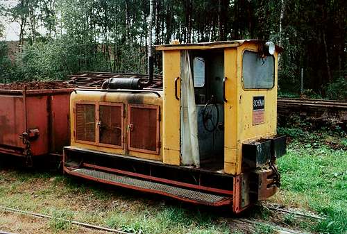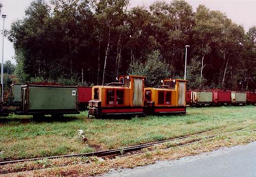 20.08.2003/ sa/ Das Werk ist in Betrieb, die meisten Strecken in die Abbaugebiete ebenfalls. Der Fahrzeugpark ist sehr modern, ich habe ausschließlich moderne Schöma-Dieselloks (orange lackiert) angetroffen sowie moderne Stahlkasten-Loren. Diese sind in Zügen von ca. 20-30 Stück gekuppelt und werden von je 2 Loks befördert.