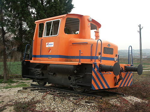 14.11.2003/ jm/ Einen Gleisanschluss hat das nördlich von Weingarten gelegene Kieswerk nicht mehr, die Lok hat man vor etwa sechs Jahren als Denkmal beim Werkseingang aufgestellt. Sie ist in optisch sehr gutem Zustand. Man kann die Lok am besten auf dem Werksgelände fotografieren (wurde ohne Probleme erlaubt), am Wochenende sind aber auch Aufnahmen vom Zaun aus möglich.