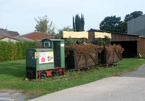 12.09.2005/ jm/ Als Hinweis auf das Torfwerk Koch bzw. auf die Moorbahnfahrten des "Seelter Foonkieker" steht im Ort eine alte Schöma-Feldbahnlok mit zwei Holz-Feldbahnwagen. Die Lok trägt an der Front ein Fabrikschild, welches aber eine Nachfertigung ist, im Führerhaus hängt aber auch noch das Original.