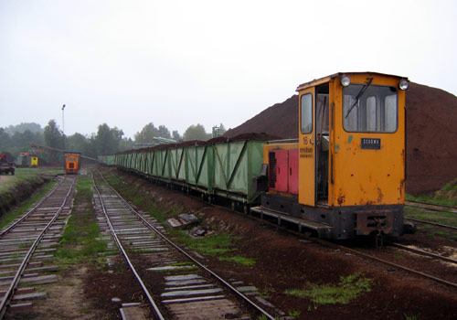 14.09.2005/ jm/ Zwischen der Sandgrube und dem Werk pendelt die Diema Bj. 1992, wobei die Lok die Wagen zum Werk zieht und zur Grube schiebt. Ob die Reserve-Diema noch vorhanden ist, wurde nicht nachgeprüft.