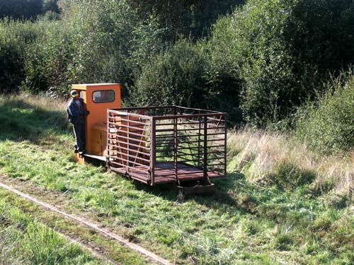 Festung Grauerort: Deutz FNr. 22792/1939, Typ OMZ117 F, dahinter einer der neuen Eigenbau-Personenwagen. (Foto: 16.09.2005, Jens Merte)