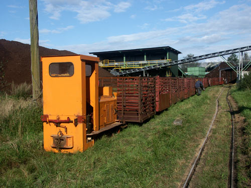 16.09.2005/ jm/ Die Verladeanlage liegt an der B 495. Lok Nr. 8 und Nr. 9 standen hier untätig rum, die Diema FNr. 2655 traf gegen 12:30 Uhr (Betriebsschluss am Freitag) aus dem Moor Lz ein. Der derzeitige Gesamtbestand konnte somit hier erfasst werden, wobei jetzt hier eine Lok aus Süddeutschland im Einsatz ist. Die einst hier gesichteten Nr. 10, Nr. 11 und Diema FNr. 2338 wurden heute alle im Werk Aschornermoor angetroffen.