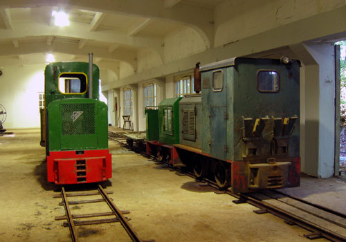Festung Grauerort: Blick in die Werkstatt bzw. den Lokschuppen: Links die Deutz FNr. 22792/1939, rechts vorne Diema FNr. 2605/1963, dahinter die Diema FNr. 1420/1951. (Foto: 16.09.2005, Jens Merte)