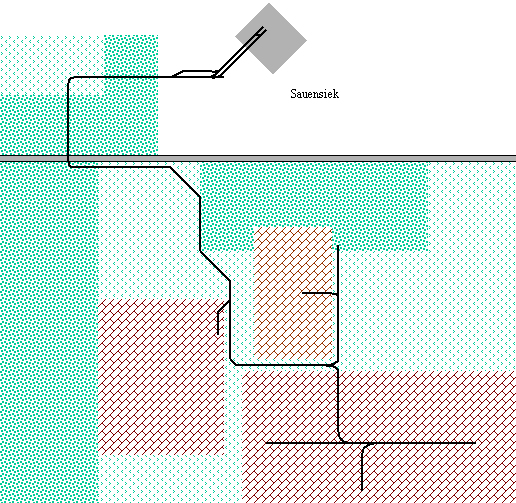 Industrie-Erdenwerk Archut: Schematische, nicht maßstäbliche Übersicht über die Feldbahn in Sauensiek.