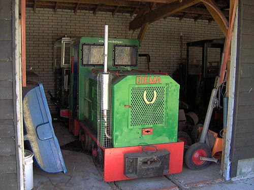 23.03.2006/ bd/ In diesem relativ kleinen Moormuseum wird gezeigt, in welcher Armut die Moorarbeiter früher leben und arbeiten mussten. Es sind mehrere Moorhütten und Moorhäuser vorhanden, komplett mit Inneneinrichtung, und jeweils eine bestimmte Bauzeit ab dem Jahre 1880 entsprechend. Die Besucher werden auf Wunsch entweder zu Fuss durch das Freigelände geführt, oder auf Loren mit Sitzbänken, stillgerecht von einer Diema DL6 gezogen. Feldbahnfreunde wird die Wahl bestimmt nicht schwer fallen.