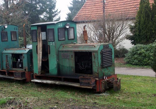 Lok 57 stammt offenbar (der Betriebsnummernbeschriftung zu Folge) vom nahe gelegenen Turba-Werk, lediglich die Motornummer Deutz 2524714/15 (F2L712) konnte ermittelt werden.