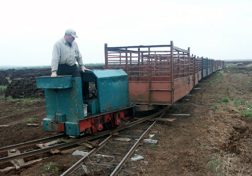 Torfwerk Haskamp: Im Moor werden Kletterweichen eingesetzt, hier zieht Diema 4195 den leeren zur Abbaustelle. (Foto: 17.05.2006, Jens Merte)