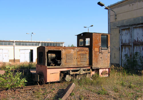 11.09.2006/ jm/ Nur noch eine Lok steht auf dem nicht mehr genutzten Anschlussgleis bei Lyssy, es handelt sich dabei um die Lok Nr. 1 des Glaswerks Großräschen. Diese wurde auch schon für eine Sammlung bei Berlin gemeldet...