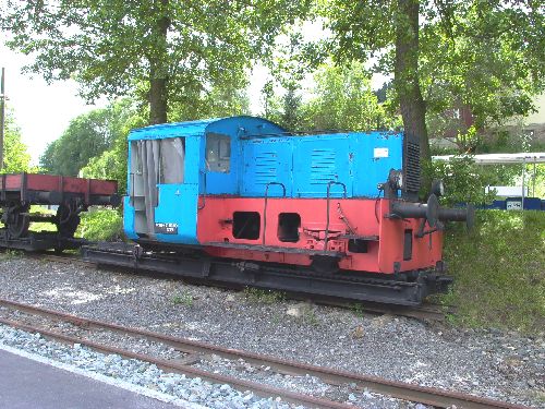 26.06.2007/ pz/ Vor dem Tor des Kalkwerkes wurde eine Grubenlokomotive als Denkmal aufgestellt. Die Herkunft ist nicht bekannt.