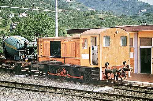 13.07.2002/ jm/ An der südlichen Ausfahrt des Bf Novi Ligure steht etliches an Gleisbaugerät, darunter auch zwei Lokomotiven aus deutscher Produktion. Zum einen ein vierachsige MaK-Stangendiesellok, die einer V65 stark ähnelt, in gelber Lackierung mit zwei dünnen blauen Streifen, Fahrwerk schwarz mit rot-grauen Radreifen und einem MaK-Schild (ohne Fabriknummer - in den Listen finde ich nur MaK FNr. 800037/1956, Typ 800D). Sie trägt sonst keine Beschriftung, ist aber so im Einsatz, denn die Lok stand auf einem Streckengleis vor (und leider auch etwas verdeckt hinter) einem Bauzug. Die zweite Lok ist eine gelb lackierte Henschel, Typ ähnlich DH 500 C. Auch hier sind keine Beschriftungen zu erkennen, die Achsfolge konnte durch das Buschwerk vor der Lok nicht ermittelt werden. Das Gelände kann man vom Parkplatz eines Supermarktes aus gut einsehen, wobei aber Buschwerk auf dem Gelände selbst und abgestellte Gleisbaufahrzeuge die Sicht auf die Lokomotiven erheblich stören und nur "Beweisphotos" zuliessen. Die Zufahrt zu dem Unternehmen liegt auf der anderen Seite der Eisenbahnstrecke und wurde auch gefunden, nur war hier schon "alles dicht". Nicht entdeckt werden konnte die V36 (Jung FNr. 8511/1940), die hier 1997 noch gesichtet wurde. Neben dieser hatte Valditerra früher auch mal eine zweite V36, die Deutz FNr. 36630/1943, welche man aber schon 1977 verschrottete.