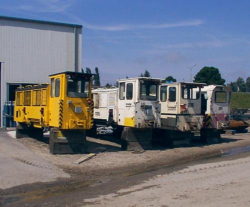 07.08.2002/ jm/ Nördlich von Lübeck überquert die B75 die Trave mittels einer Klappbrücke. Diese ist mittlerweile aber stark sanierungsbedürftig und da sich eine Aufarbeitung nicht lohnt, wird die gesamte Brücke durch einen Tunnel - der sogenannte Herrentunnel - ersetzt. Auf beiden Seiten der Trave haben die Arbeiten bereits begonnen. Zum Einsatz werden dabei auch Tunnellokomotiven kommen, so wie es auch schon beim Bau der vierten Elbtunnelröhre der Fall war. Zwar sind die Arbeiten noch nicht soweit, dass die Lokomotiven eingesetzt werden können, aber vier Maschinen sind bereits auf der nördlichen Baustelle abgestellt vorhanden. Während die Schöma 5121 eine neue gelb-schwarze Lackierung erhalten hat, präsentieren sich die anderen drei (zwei Schöma und eine Diema) noch in einer weiß-roten Farbgebung, die wohl noch von den vorhergehenden Einsätzen stammt. Daher dürften auch die angeschriebenen Nummern 2 und 7 stammen. Zum Einsatz kommen die Maschinen vorraussichtlich erst in zwei bis drei Monaten.