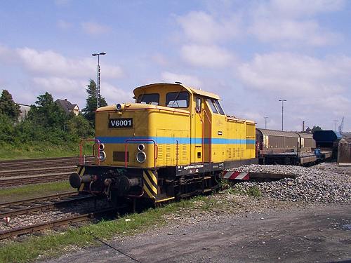 07.08.2002/ jm/ Die Einsatzlok, V 6001, durfte ohne Probleme im Übergabebereich zum HBf Lübeck fotografiert werden. Laut Anschrift erhielt diese Lok bei der NEWAG am 20.03.1997 eine HU. Einen festen Fahrplan gibt es nicht, gefahren wird mit dieser Lok, wenn es "Not tut". Für heute war kein EInsatz mehr vorgesehen.