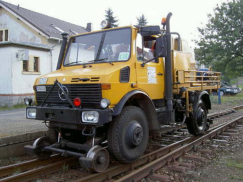 07.09.2002-info/ er/ In der ersten Septemberwoche war ein Zweiwegefahrzeuge auf der Strecke zwischen Freiberg und Holzhau im Einsatz. Es handelt sich dabei um einen Unimog der Firma Janssen aus Kalkar, Niederlassung Kleinbadegast. Diese Niederlassung setzt im Laufe des gesamten Jahres zwei Fahrzeuge diese Types ein. Die Niederlassung in Kalkar besitzt nach Aussagen der Mitarbeiter fünf oder sechs Fahrzeuge diese Types. Ein Gleisanschluss bei der Firma ist jedoch nicht vorhanden, alle Fahrzeuge gelangen über die Straße an Ihren Einsatzort. Die ersten Zweiwegefahrzeuge lieferte Ries laut Referenzliste bereits 1971 und 1975 nach Kalkar.