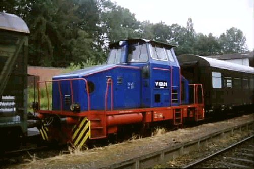 In Bornum stand an der Ladestraße die V 60.01 der DBG als Reservelok bereit. Dabei handelt es sich um eine MAK 650C, die man im Frühjahr 2002 von der Werkbahn Wolff aus Walsrode übernehmen konnte.