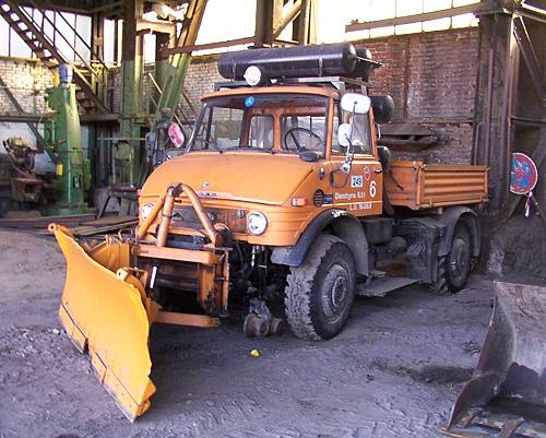 Krupp, Niederschelden: Der Unimog wird trotz aufwendiger Zweiwegeeinrichtung nur noch als Straßenfahrzeug genutzt. (Foto: 22.02.2003, Jens Merte)