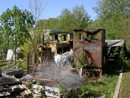 04.05.2003/ er/ In ca. 500 m Entfernung zum DB Bahnhof befindet sich direkt neben einer Kleingartenanlage "Rehblick" eine alte Sandgrube. Auf diesen Gelände sind einige "Feldbahn"-Spuren zu finden, neben Gleisjochen, div. Eisenbahnutensilien und mehreren abgestellten Kipploren und Plattenwagen befinden sich hier auch zwei LKM-Feldbahnlokomotiven Typ Ns2f. An den Maschinen konnte der Ursprungsort nicht festgestellt werden. Nach Aussagen einiger Kleingärtner soll auf dem Gelände der Sandgrube eine kleine Feldbahnschauanlage enstehen. Bei einer frühern Aktion der Feldbahn auf dem Bahnhof Crossen im Jahr 1997 wurde ebenfalls die Akkulok der Getriebefabrik Penig und ein paar Wagen präsentiert, jedoch konnte heute nichts davon entdeckt werden.